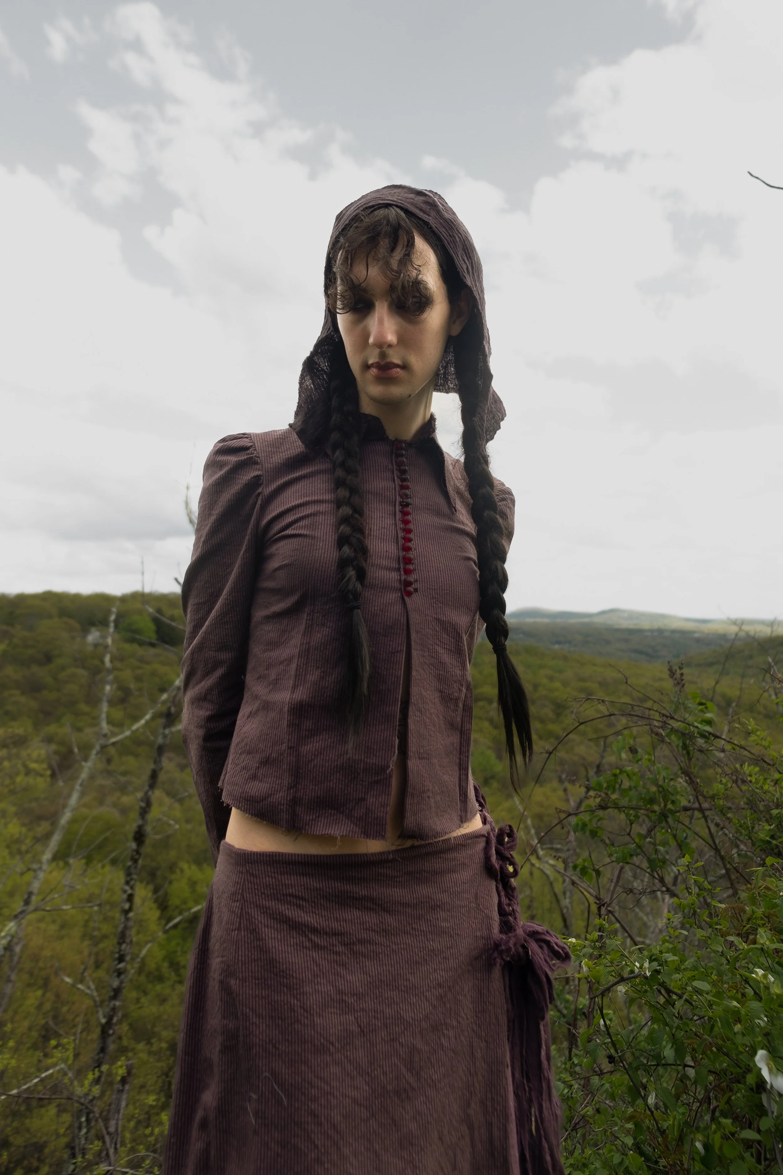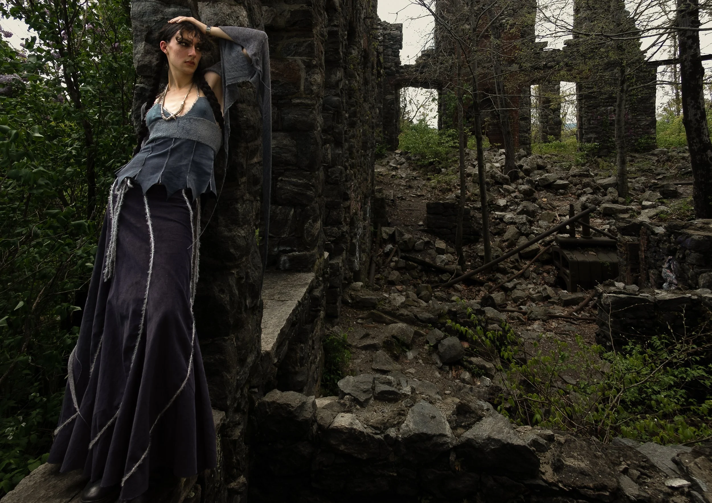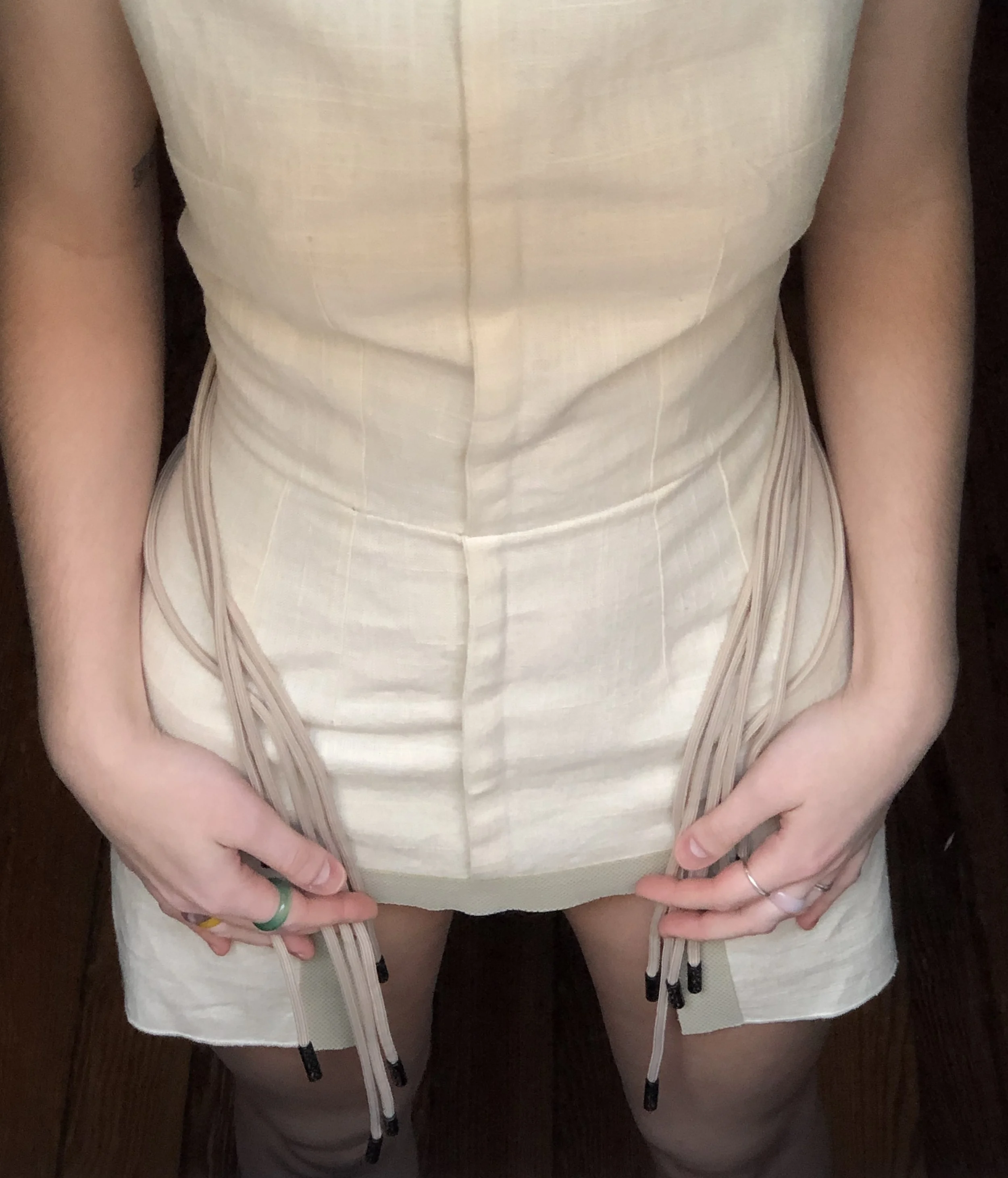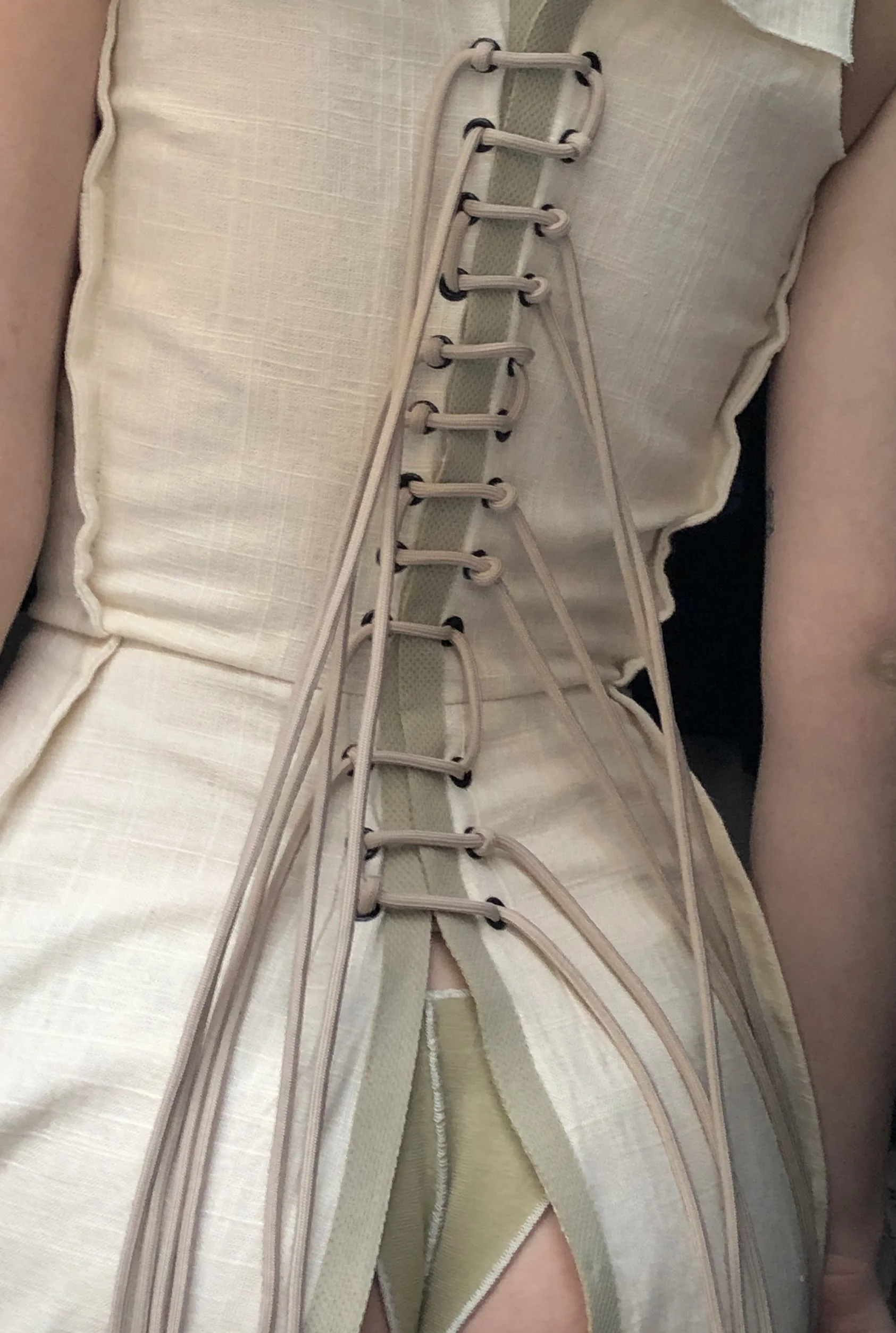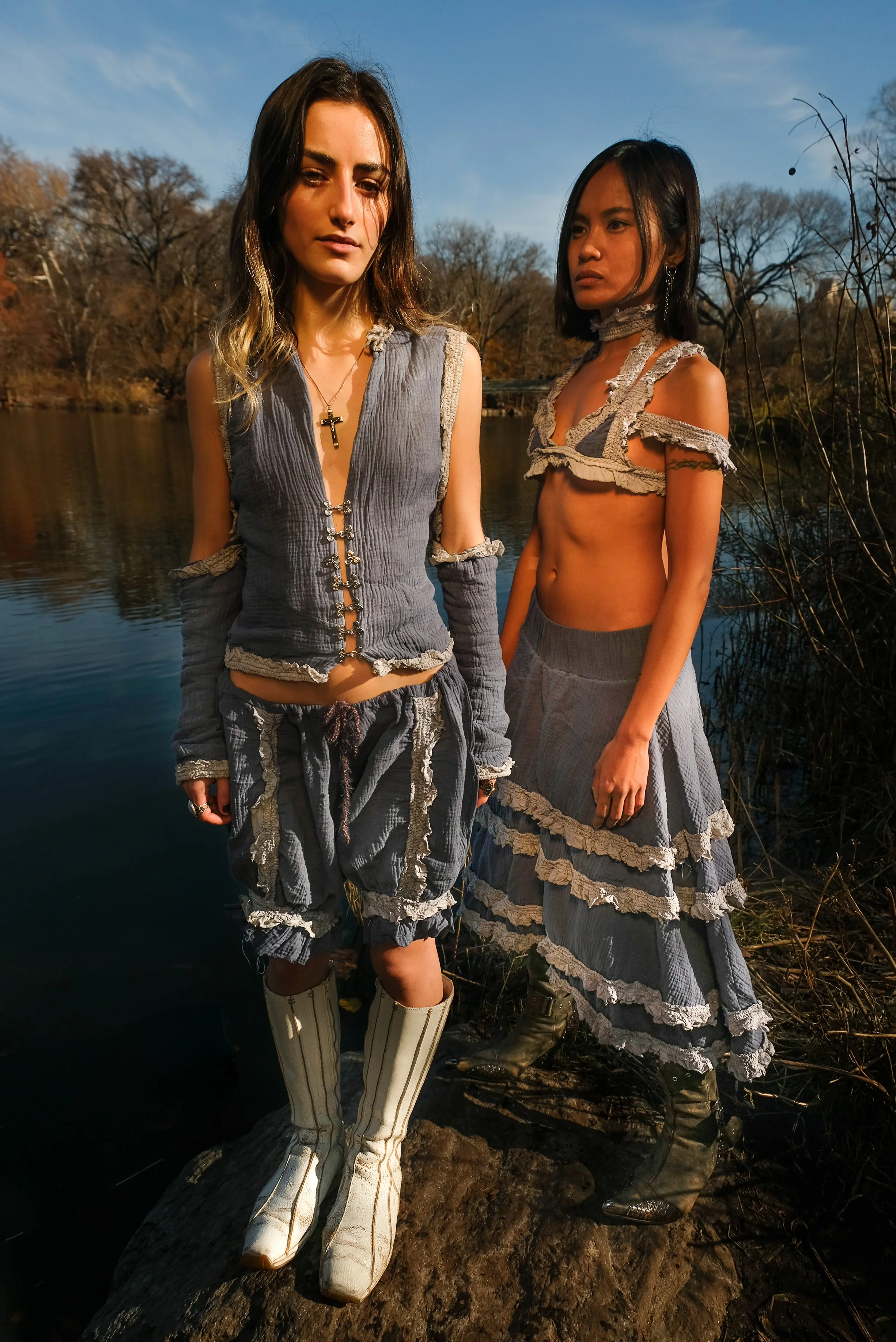 ULTRAFILTER references oceanic filtration systems juxtaposed with sickly little victorians. All work is hand dyed and all trim was handmade, including muslin trim and hand dyed and braided yarn.